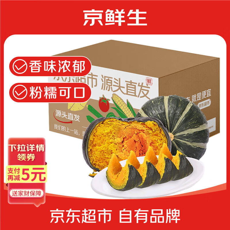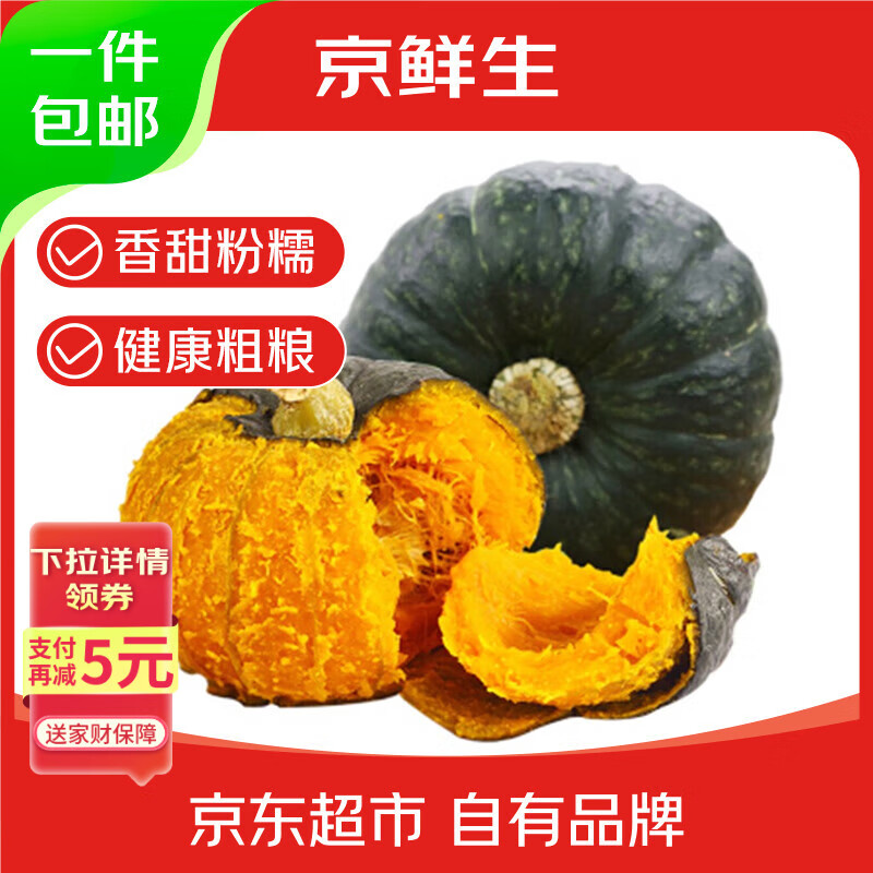 包邮 京鲜生 内蒙贝贝南瓜净重5斤(品种:麻籽) 中果300g+ 板栗香 源头直发